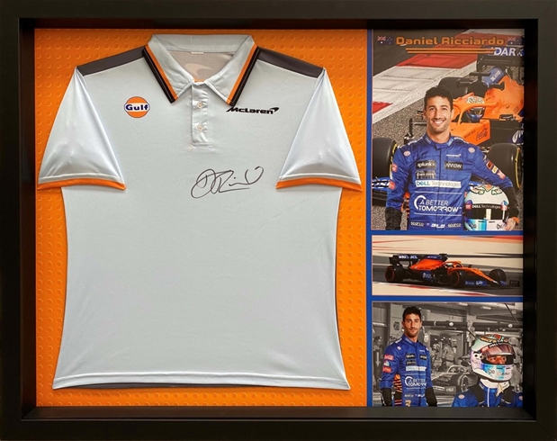 Aussie Daniel Ricciardo has hand signed this 2021 McLaren F1 shirt