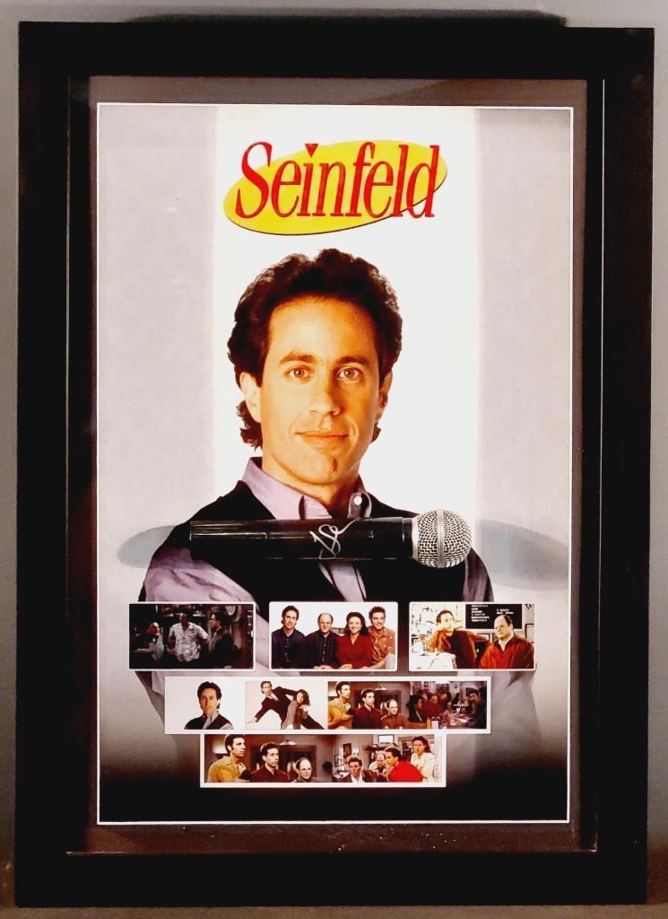 JERRY SEINFELD HANDSIGNED MICROPHONE IN FRAMED DISPLAY Comes With Proof Of Purchase Certificate From Centre Stage Collectables Size: 74cm x 54cm x 8 cm Condition: Excellent
