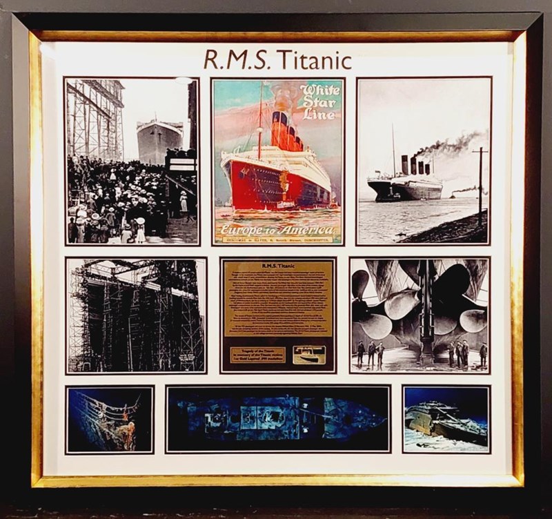 R.M.S. TITANIC GOLD LAYERED MEDALLION IN FRAMED DISPLAY Comes With Certificate Of Authenticity From Icons Of Sport Size: 74cm x 80cm x 6cm Condition: Excellent